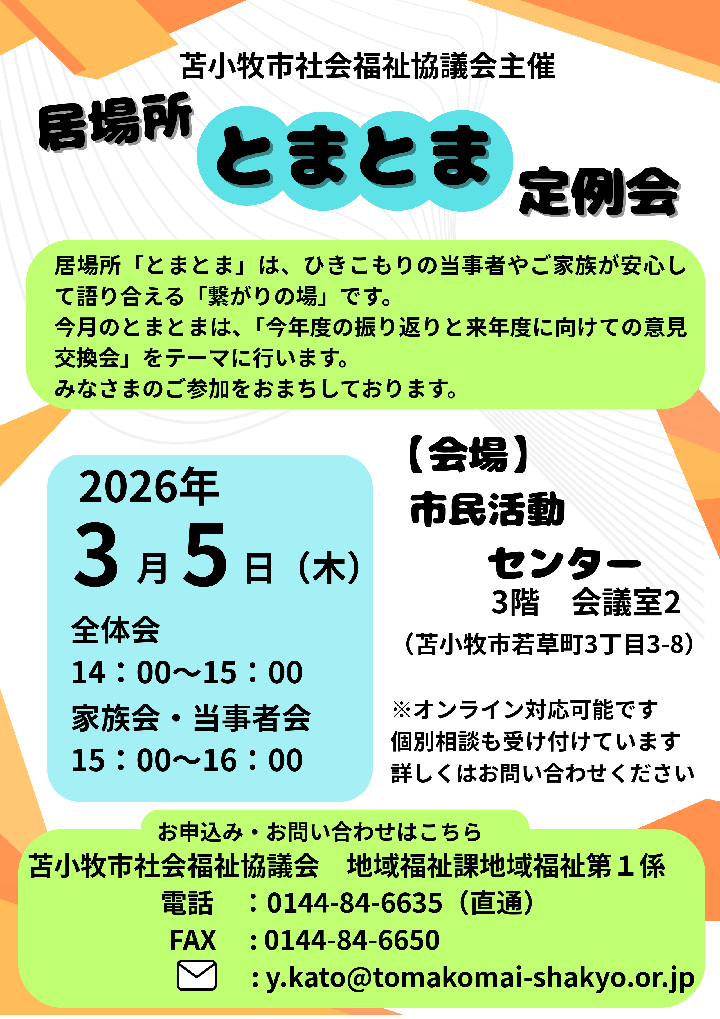 居場所「とまとま」定例会を開催します。